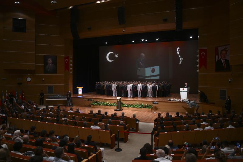 Erdoğan, bugün 80'i dost ve kardeş ülkelerden gelen askeri misafir personel olmak üzere toplam 241 subayın mezuniyet heyecanına şahitlik ettiklerini kaydederek, 14'üncü Dönem Müşterek Komuta ve Kurmay Eğitimi ile 7'nci Dönem Kuvvet Harp Enstitüleri Komuta ve Kurmay Eğitimlerini alınlarının akıyla nihayete erdiren her bir subayı yürekten tebrik etti.