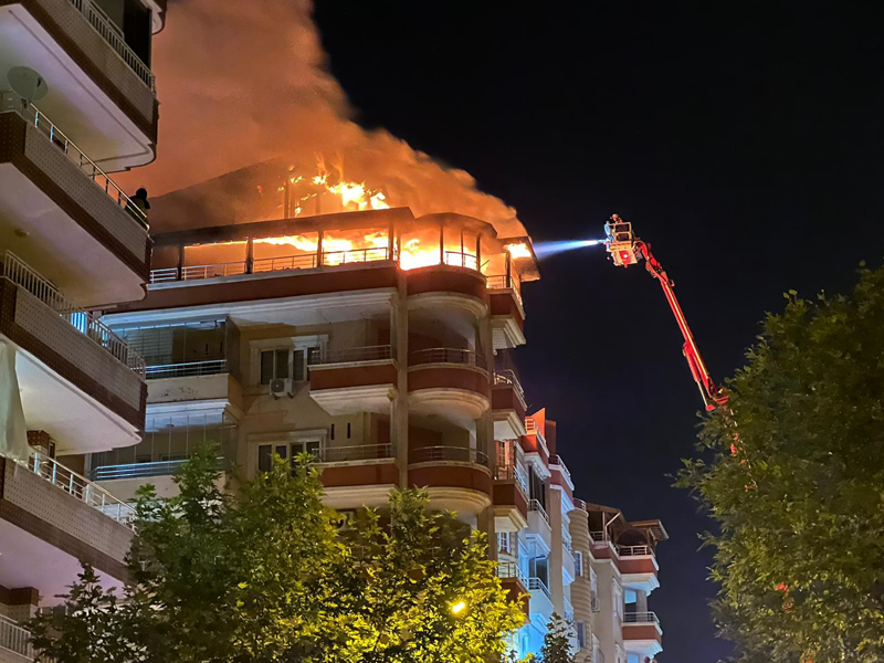 Alevler kısa sürede teras katındaki daireleri sardı.
