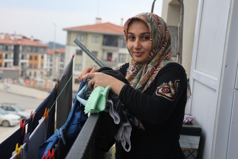 Depremde 10 saat sonra enkaz altından kurtarıldığını ifade eden Emine Adaş, "6 Şubat depreminde ailemle birlikte 10 saat enkazın altında kaldık. Görümcem ve 2 çocukları vefat etti. Ben enkazdan kurtarıldıktan sonra 3 ay yatalak kaldım. Annemlerde kaldım ve 3 ay annem bana baktı. Çadırda kaldım sonra konteyner çıktı. Konteynerde kalmaya başladık bir buçuk yıl sonra Baykar konutlarından bize ev çıktı. Rabbime çok şükür evimize kavuştuk. Bayraktar konutlarında yaşıyoruz. Onlardan Allah razı olsun ve Allah hepsini gönlüne göre versin" dedi.