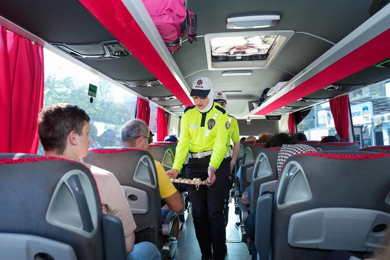 Otogarda uygulama yapan polislerle bayramlaşan Vali Gül, daha sonra denetim için durdurulan otobüslere binerek, yolculara emniyet kemeri ve güvenli yolculuk konusunda uyarılarda bulundu.