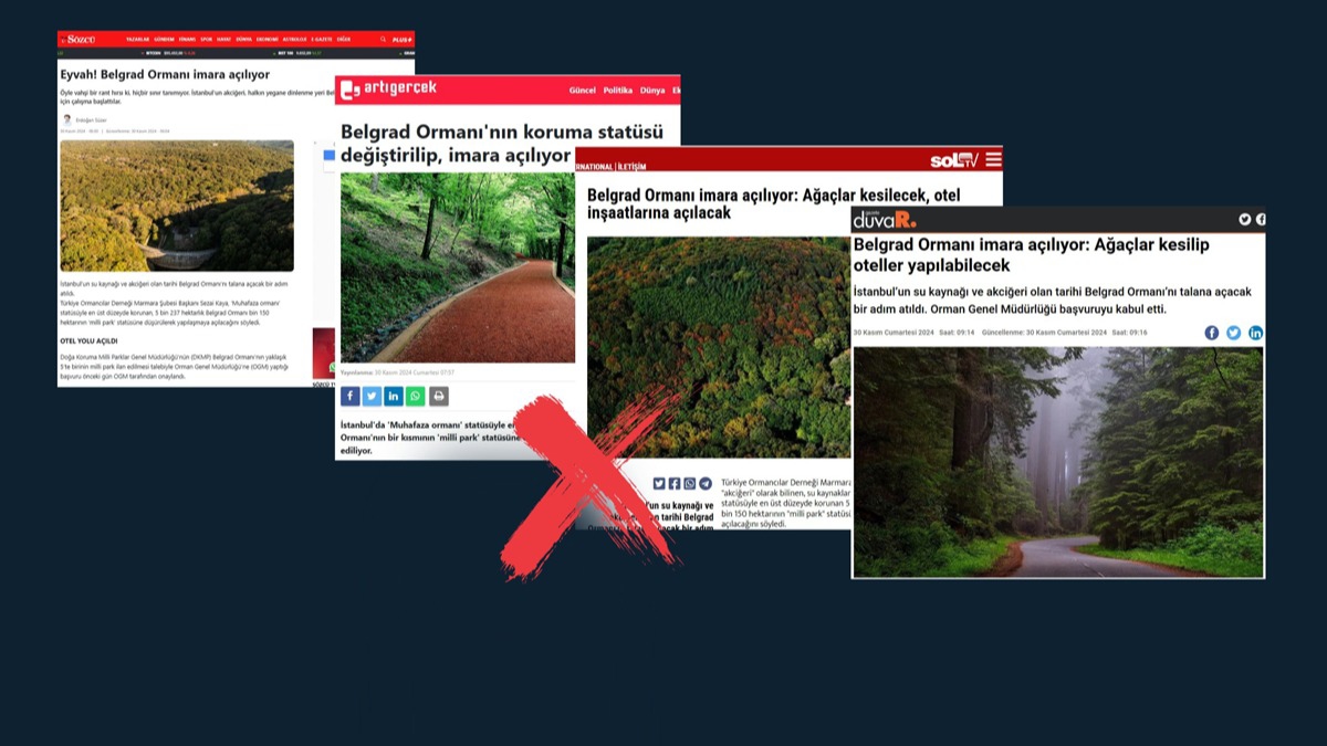 "Dolayısıyla milli park statüsü, iddia edildiği gibi imara izin veren bir statü değil, uluslararası kriterlere göre muhafaza ormanından daha üst bir alan koruma statüsüdür. Ayrıca sit alanı olan Belgrad Ormanı'nda, yapılaşmaya izin verilmemektedir. Kamuoyunu manipüle etmeye yönelik asılsız iddialara itibar etmeyiniz."