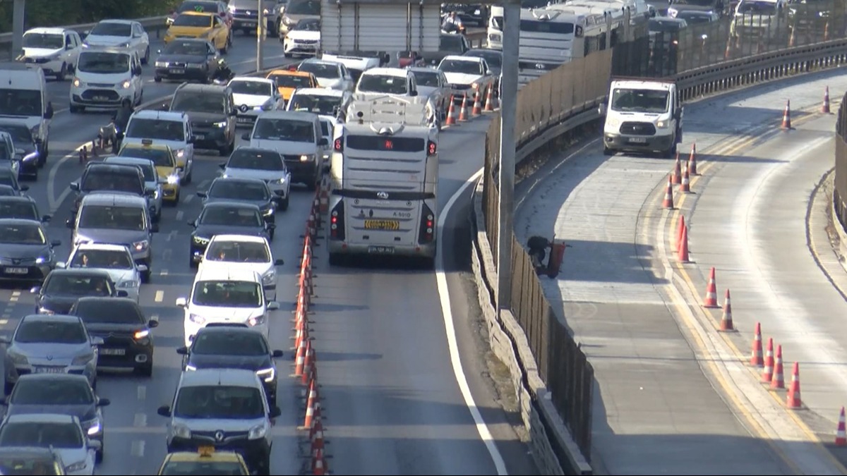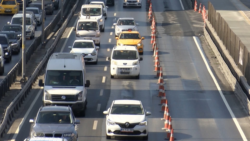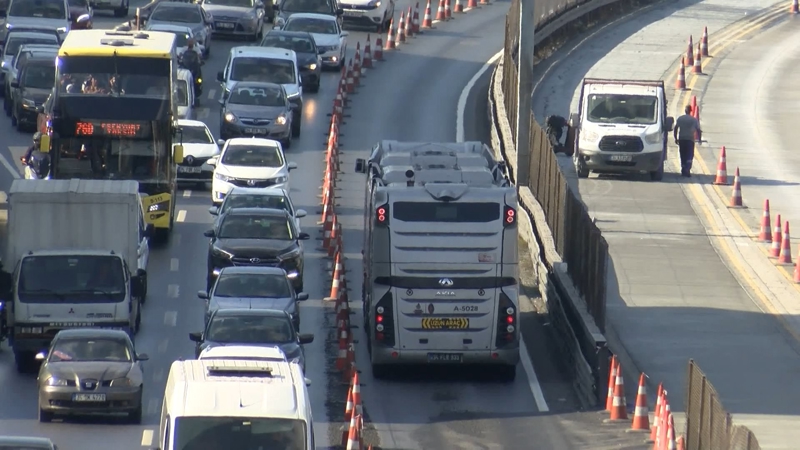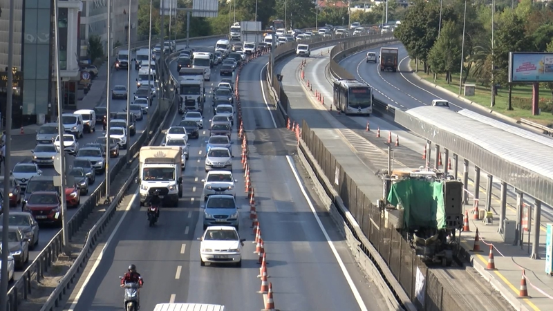 İstanbul Büyükşehir Belediyesi'nin metrobüs yolunda yürüttüğü 'Beyaz Yol' çalışması trafik yoğunluğuna neden oluyor. D-100 Karayolunda üç şeritli yol iki şeride düştü.
