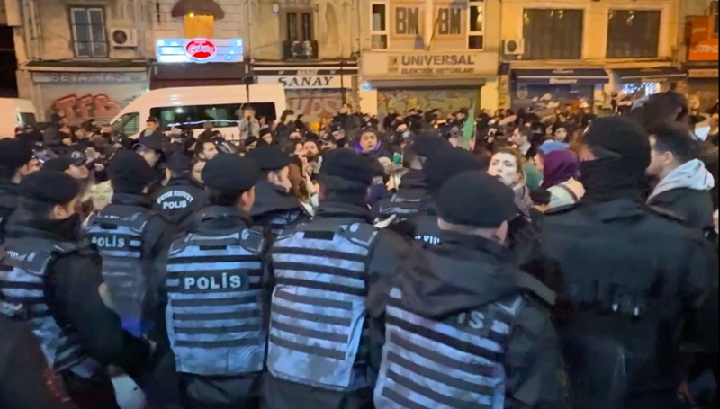 O anlar kameralara yansırken göstericiler polis tarafından gözaltına alındı. Bu grubun ardından Karaköy Meydanı'nda toplanan bir diğer grup da polis tarafından yapılan uyarıları sonucu dağıtıldı. Gözaltına alınan çok sayıda kişi polis midibüsleriyle emniyete götürüldü.