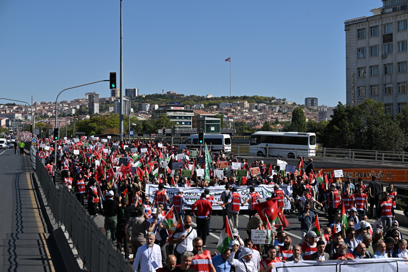 İsrail'in 7 Ekim 2023'ten bu yana süren saldırıları nedeniyle Filistin'de yaşanan insanlık dramına dikkati çekmek ve Gazzelilere destek olmak amacıyla İstanbul'da "Soykırıma İsyan Filistin'e Destek Yürüyüşü" düzenlendi.