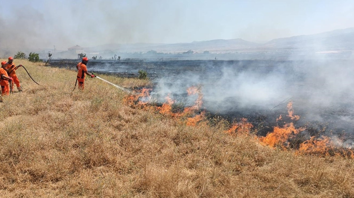 Soğutma çalışmasının devam ettiği bölgede 10 dönüm ormanlık alanın zarar gördüğü öğrenildi.