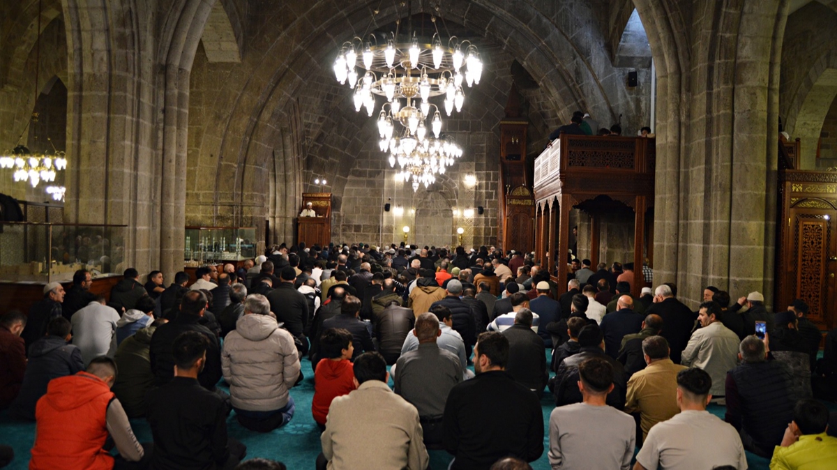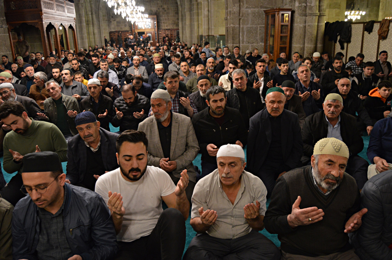 Yatsı ezanından sonra camileri dolduran vatandaşlar, Kur'an-ı Kerim okuyup dua etti. Camide yer bulmakta güçlük çeken vatandaşlar, avlulara serdiği seccadelerde namaz kıldı.
