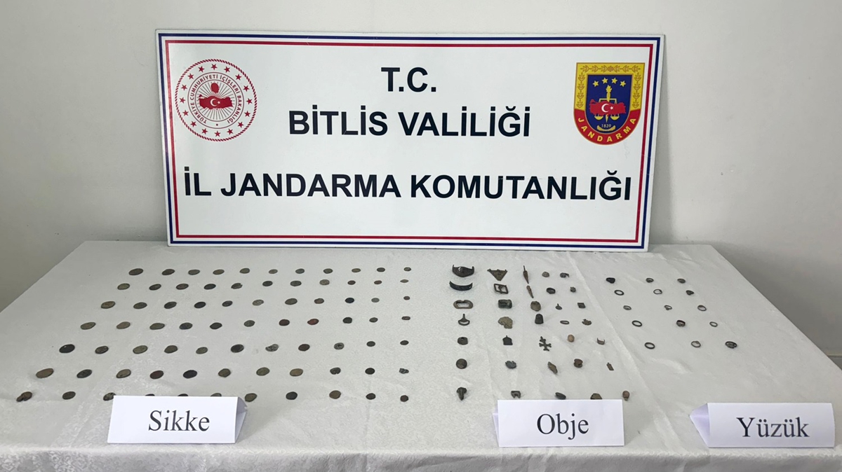 Bu kapsamda, Ahlat'ta gerçekleştirilen operasyonda 2 şüpheli gözaltına alındı. Belirlenen adreslerde yapılan aramada 80 sikke, 36 obje ve 15 yüzük ele geçirildi.