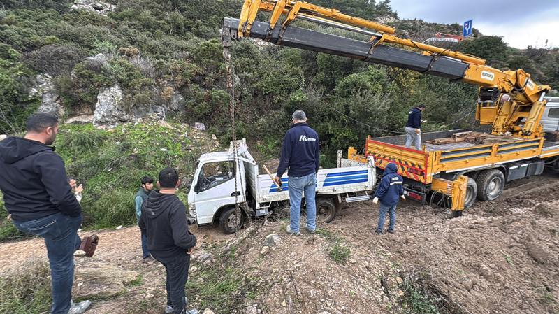 Sürücüsü henüz öğrenilemeyen 48 ADU 608 plakalı kamyonet, Bodrum-Yalıkavak kara yolu Dağbelen mevkisinde kontrolden çıkarak yaklaşık 20 metrelik uçuruma devrildi.
