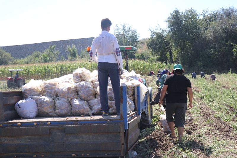 Patates deyince akla ilk gelen şehirlerden biri olan Bolu'da patates hasadı başladı. Üreticilerin nisan-mayıs aylarında toprakla buluşturduğu patatesler toplanmaya başlandı. Günlüğü 400 lira olan patates toplama işçileri, sıcak havada tarlalarda kovalarla patatesleri topluyor. Kovalarla tarladan toplanan patates, çuvallara doldurularak, traktör römorklarına yükleniyor. Üretici Erdal Özkan, zorlu şartlar altında tarladan sofralara getirilen patateste bu sene dengesiz yağışlar sebebiyle verimin yüzde 30 düştüğünü ifade etti. Yağışların patates verimine etki ettiğini dile getiren Özkan, "Bu sene, geçen seneye göre verim yüzde 30 daha az. Dengesiz yağışlar nedeniyle verim düştü. Yağmur hızlı ve çok yağdı. Patates çizilerinde su birikti. Bu sebeple de çürüme oldu. Ben kendim bu tarlayı 4 kere suladım. Ondan sonra da patates tarlasında fazla ot oldu. 5'nci kez sulamamaya karar verdim" dedi.