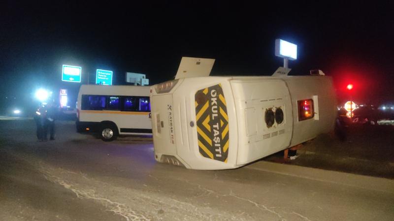 Çarpmanın şiddetiyle midibüs devrildi.