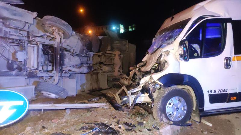 Orhangazi- Bursa kara yolu Küçük Sanayi Sitesi kavşağında, Memduh K. (55) idaresindeki 16 S 7620 plakalı servis midibüsü ile Hüseyin S. (53) yönetimindeki 16 S 7044 plakalı servis minibüsü çarpıştı.