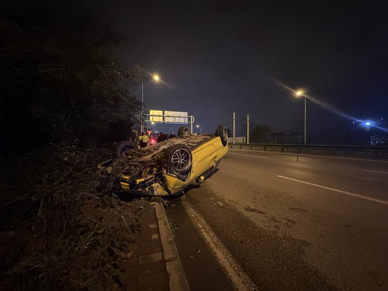 Oğuzhan S. idaresindeki 35 AE 0454 plakalı otomobil, Gaziakdemir Mahallesi Mudanya Caddesi'nde kaldırıma çarparak takla attı.