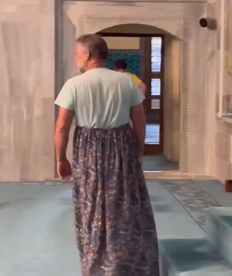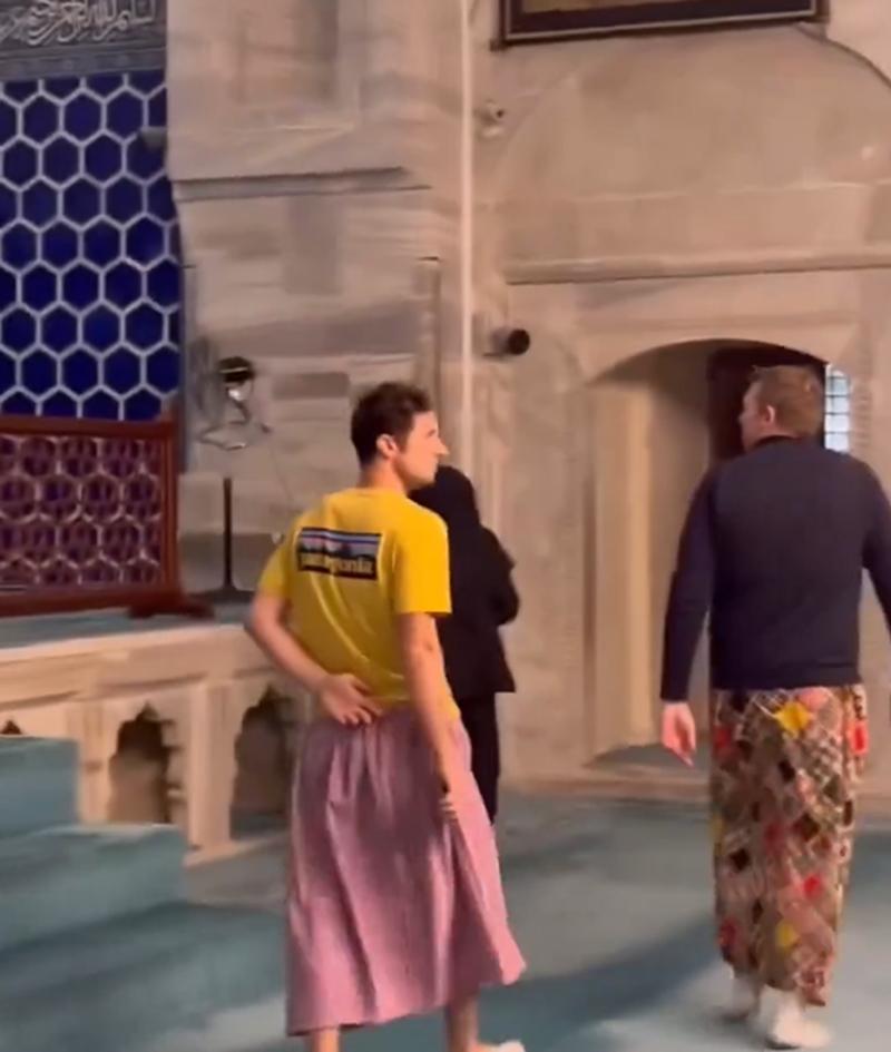 İstanbul Barosuna kayıtlı avukat Ayşenur Şaş tarafından çekilerek sosyal medyada paylaşılan videoda, bir turist kafilesindeki erkeklerin saygıdan dolayı şortlarının üzerine etek giyip camiyi gezdiği ve fotoğrafladığı görüldü. Video, paylaşıldığı mecralarda çok sayıda beğeni aldı.