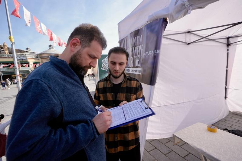"81 ilde valilikler nezdinde izinler alınmış, belediye başkanlarına, belediye başkanlıklarına bilgi verilmiş şekilde bu imza kampanyalarını yürütüyoruz. Ayrıca 40'tan fazla şehirde de aile platformları var. Büyük Aile Platformunun ülke genelinde yürüttüğü bu çalışmanın illerde izdüşümü olan aile platformları var. Onlar da bu imza kampanyasına destek veriyor. Bu kampanya sonunda en az 150 bin ıslak imzaya ulaşabilirsek bunu TBMM'ye, Cumhurbaşkanı'mıza ve RTÜK'e sunacağız. Vatandaşımızın T.C. kimlik numarasını, isim, soy isim bilgilerini aldığımız bu formlarla doldurulmuş ıslak imzaları Meclis'e sunduğumuzda, TBMM bunu gündeme almak durumunda."