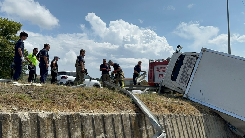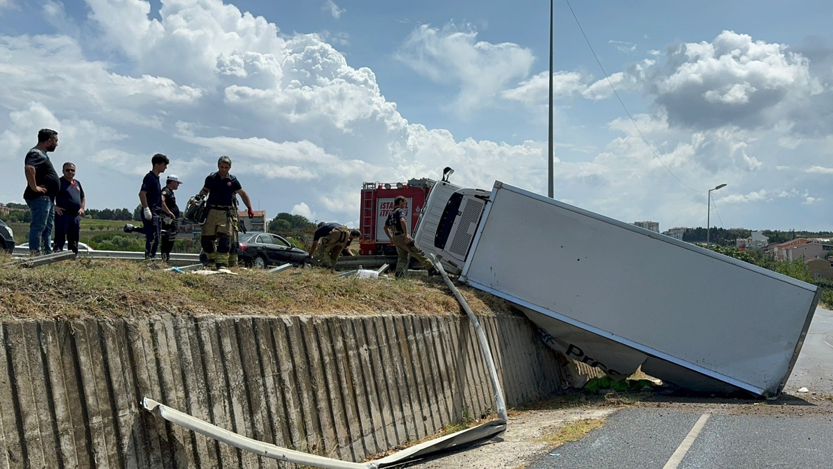 Kaza, saat 11.30 sıralarında Büyükçekmece Güzelce Mahallesi D-100 karayolu üzerinde meydana geldi. Beylikdüzü istikametinde seyir halinde olan 34 KCN 652 plakalı kamyonun şoförü M.K., sağanak sonrası kayganlaşan yolda direksiyon hakimiyetini kaybetti. Kamyon kayarak önce bariyerlere çarptı ardından da yan yola devrildi. Kazayı görenler polise haber verdi. İhbar üzerine olay yerine gelen polis ekipleri şoförün kendi imkanlarıyla kamyondan çıktığını görünce kamyonetin yoldan kaldırılması için itfaiyeye haber verdi. İtfaiye ekipleri bariyerleri keserek kamyonetin kaldırılması için çalışma başlattı.