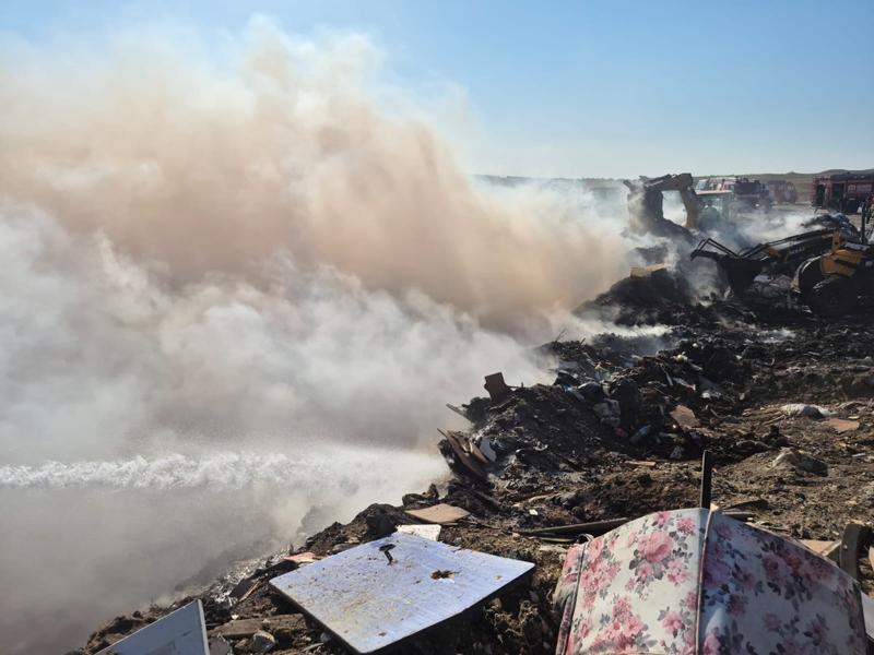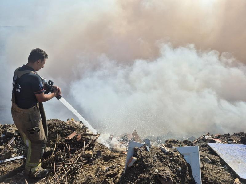 5 dönümlük alanı etkileyen yangında sahada tutuşan katı atıkları söndürmek için kepçe ve çeşitli iş makineleri kullanılırken, ilçe belediyeleri de su tankerleriyle ekiplere destek verdi.