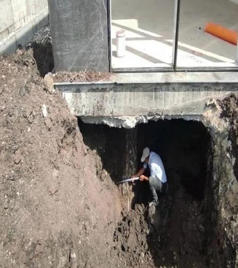 Zemin sondajlarının kaba inşaatı tamamen bitmiş villa bahçelerinde yapıldığı tespit edildi.
