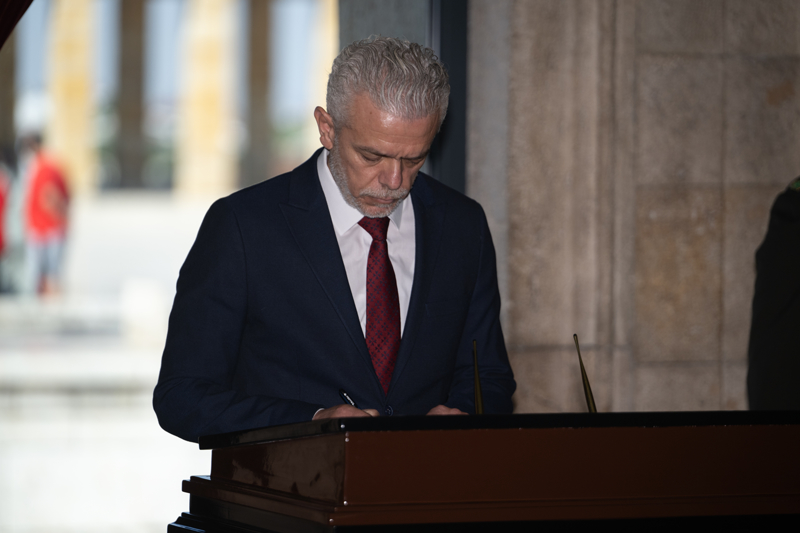 Daha sonra hatıra fotoğrafı çektiren Korukoğlu, Anıtkabir Özel Defteri'ni imzaladı.