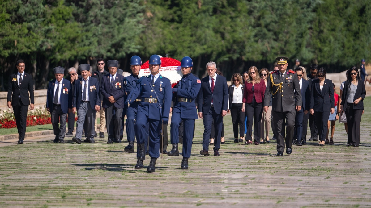 Beraberindeki heyetle Aslanlı Yol'dan yürüyerek Gazi Mustafa Kemal Atatürk'ün mozolesine gelen Korukoğlu, buraya çelenk bırakıp saygı duruşunda bulundu.