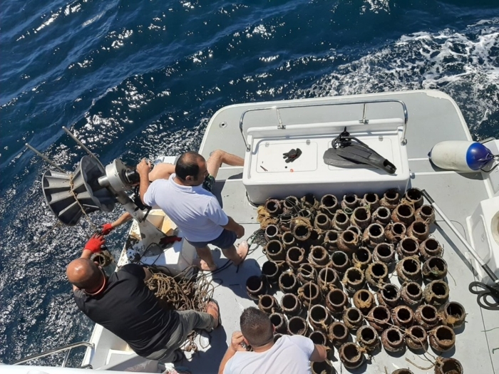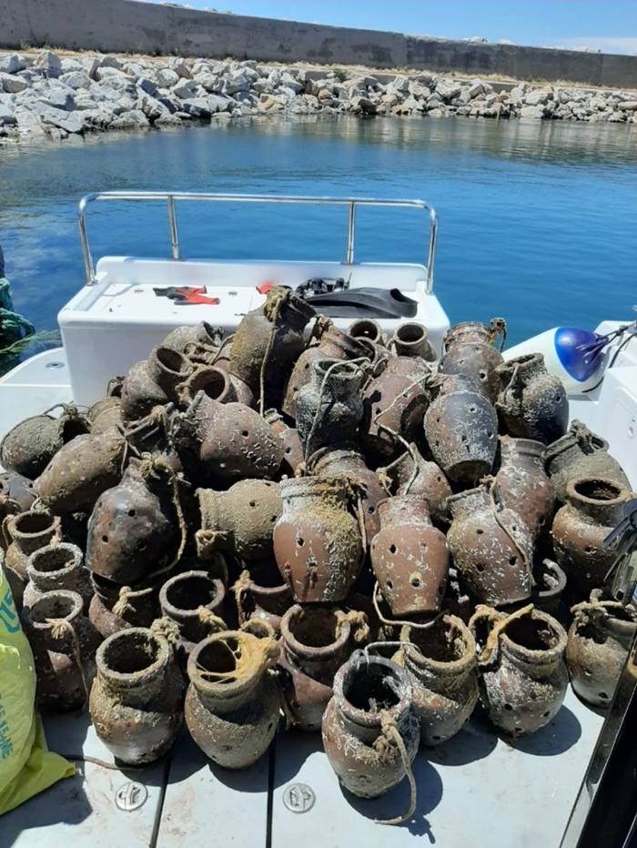 2016 yılında başlatılan ve her yıl büyük hassasiyetle devam eden denizlerin ölüm tuzaklarından arındırılması için çalışmalara aralıksız devam ettiklerini belirten Karadağ, “Sayın bakanımızın büyük hassasiyeti doğrultusunda 2020 yılında da biz İl Müdürlüğü olarak devam ettirdik. Şöyle ki; yine yaptığımız kontrol ve denetimler neticesinde avcılığı yasak olan deniz patlıcanı yakalamada kullanılan algarna diye tabir ettiğimiz 3 adet ağı denizden çıkarttık. Aynı zamanda yasak dönemde avcılığı yapılan ahtapot yakalamada kullanılan 10 kilometre uzunluğundaki iplere donatılmış çeşitli çömlek ve pimaş borulardan oluşan düzenekleri de yine çıkartıp, bertarafını yaptık” diye konuştu.
