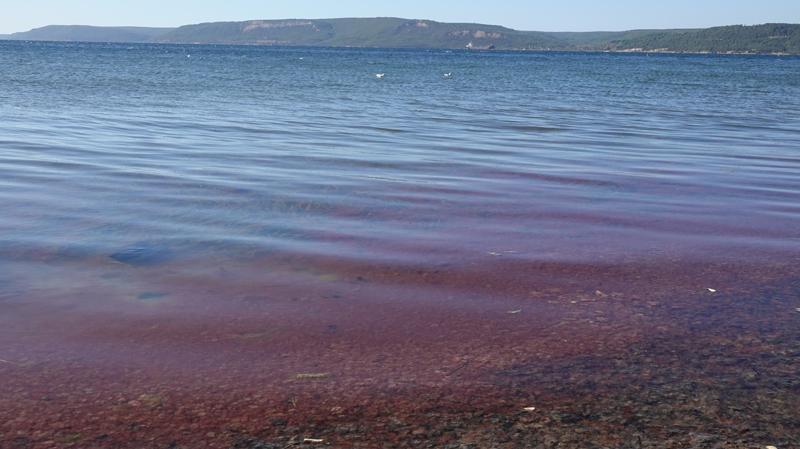 Bölgede iki gündür etkili olan fırtına nedeniyle kıyı kesimleri ile sahil bölgesi kırmızı alglerle kaplandı.