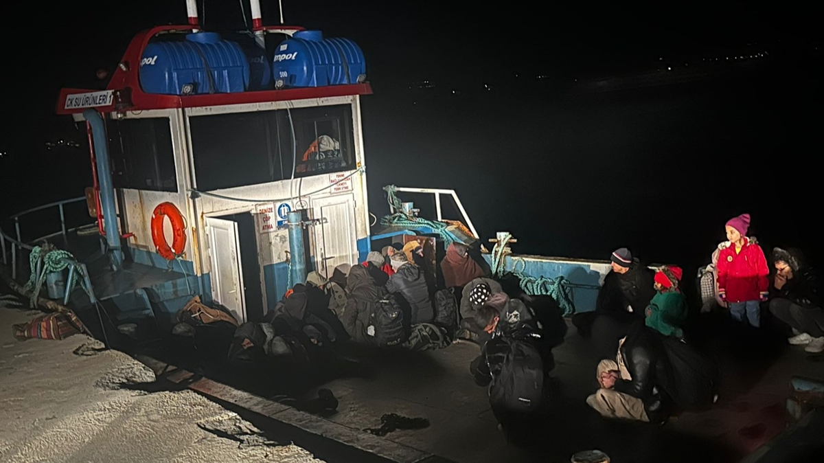 Kara ve deniz unsurlarının yanı sıra İHA'ların da kullanıldığı operasyonda, İtalya'ya seyir halinde olduğu tespit edilen "CK Su Ürünleri-1" isimli balıkçı teknesinde, aralarında kadın ve çocukların da bulunduğu 84 Afganistan, İran, Irak, Filistin, Suriye ve Pakistan uyruklu düzensiz göçmen yakalandı. Yabancı uyruklular, Ayvacık Geri Gönderme Merkezi'ne götürüldü.