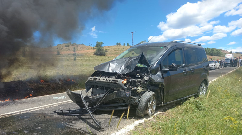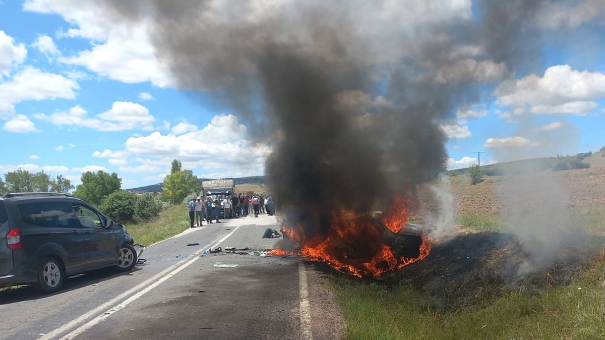 Çarpışmanın etkisiyle otomobilde yangın çıktı.