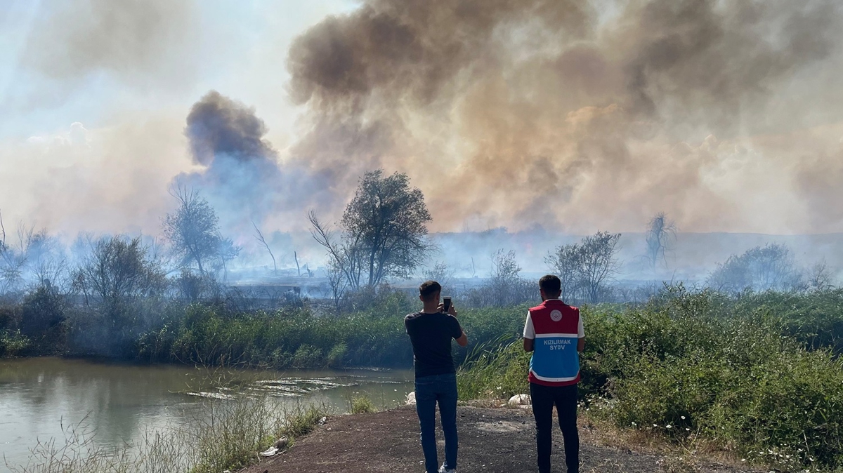 İlçeden geçen Kızılırmak Nehri kenarında bulunan ve iğde ağaçlarının da olduğu otluk alanda henüz belirlenemeyen nedenle yangın çıktı.