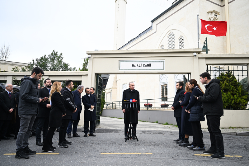 Erdoğan, Üsküdar'daki Hz. Ali Camisi'nde kıldığı cuma namazının ardından gazetecilerin sorularını yanıtladı, gündeme ilişkin değerlendirmelerde bulundu.