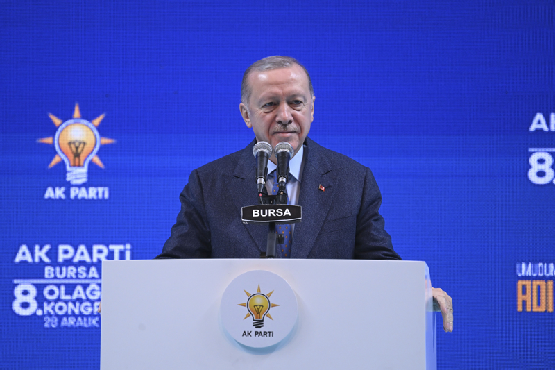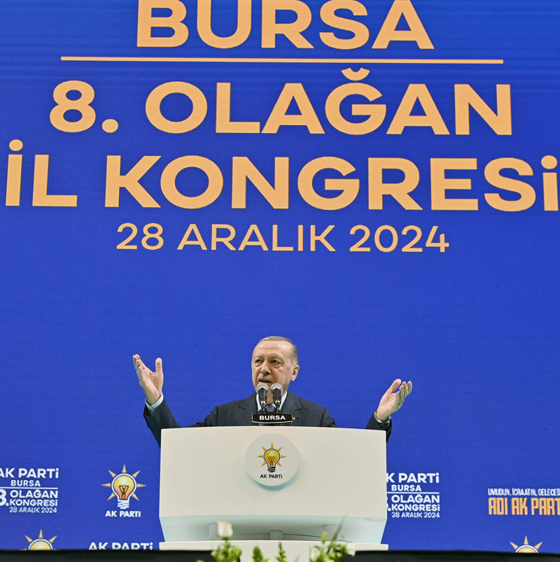 Cumhurbaşkanı Erdoğan, Tofaş Spor Salonu'nda düzenlenen AK Parti Bursa 8. Olağan İl Kongresi'nde yaptığı konuşmaya, katılımcıları ve Bursa halkını selamlayarak başladı.