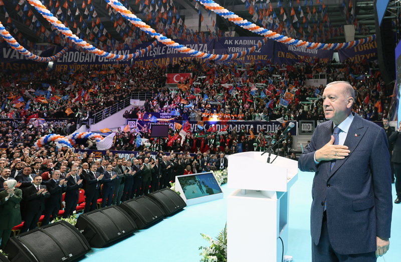 "AK Parti olarak, bu ucuz siyaset tarzını 2002'den beri hep elimizin tersiyle ittik. 'Kendimiz bedel ödesek dahi millete ve ülkeye bedel ödettirmeyeceğiz.' dedik. 'Her şart altında Türkiye için en iyisini yapacağız, zor da olsa en doğru kararı alacağız.' dedik. Hamdolsun bu duruşumuzdan da şimdiye kadar taviz vermedik. Şu noktaya özellikle dikkat etmenizi istiyorum, siyaset kurumuna güveni yeniden biz tesis ettik. Türkiye'nin asırlık sorunlarına çözüm yollarını biz geliştirdik. Birkaç milyar dolarlık operasyonlarla ekonomisi adeta deprem geçiren bu ülkeyi küresel şoklara bile dirençli ve dayanıklı hale biz getirdik. Ulaştırmada, konutta, enerjide, tarımda, çalışma hayatında, savunma sanayinde Türkiye, tarihinin en büyük şahlanışını bizimle yaşadı. 22 yıl önce hayal dahi edilemeyen büyük dönüşümleri, büyük reformları ülkemizde biz gerçekleştirdik. Artık dünyada sözünün ağırlığı olan, itibarı artan, ay yıldızlı bayrağı başta komşuları olmak üzere tüm dünya için güven veren bir Türkiye var. Tüm bu söylediklerimi ve çok daha fazlasını hep yere sağlam basarak, adımlarımızı sağlam atarak yaptık."