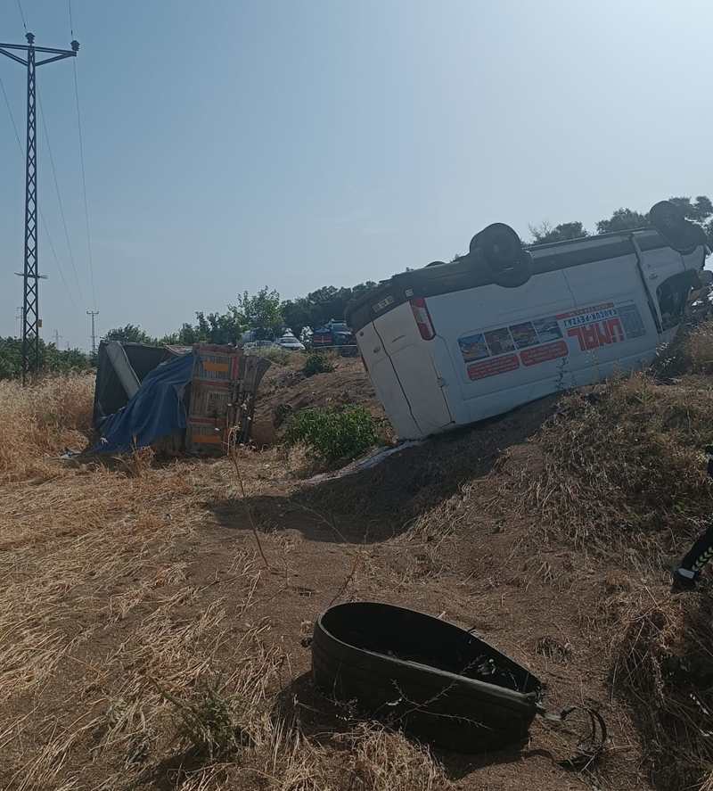 Çarpışmanın etkisiyle araçlar şarampole devrildi.