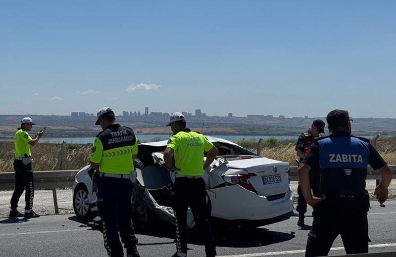 Çatalca mevkisinde seyreden 34 DZC 538 plakalı otomobil, Büyükçekmece yol ayrımında bariyere çarparak savruldu.