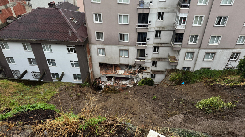 Yağışın etkili olduğu ilçeye bağlı Eskipazar Mahallesi'nde 6 katlı bir apartmanın arka tarafında bulunan toprak kütlesi kaydı.