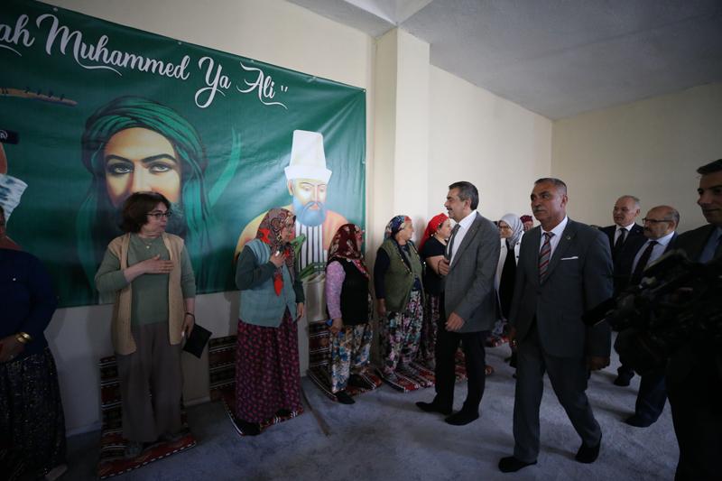 Balıkesir'deki temasları kapsamında, Bahçedere Mahallesi'ndeki cemevinde, sivil toplum kuruluşu temsilcileri ve vatandaşlarla buluşan Tekin, onlarla sohbet etti.