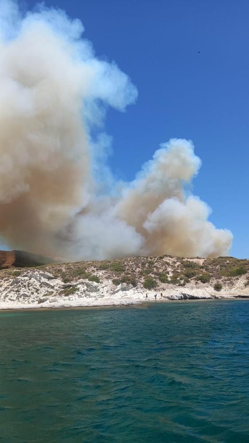 Alaçatı Mahallesi Deliklikoy mevkisindeki ormanlık, makilik ve otluk alanda henüz belirlenemeyen nedenle yangın çıktı.