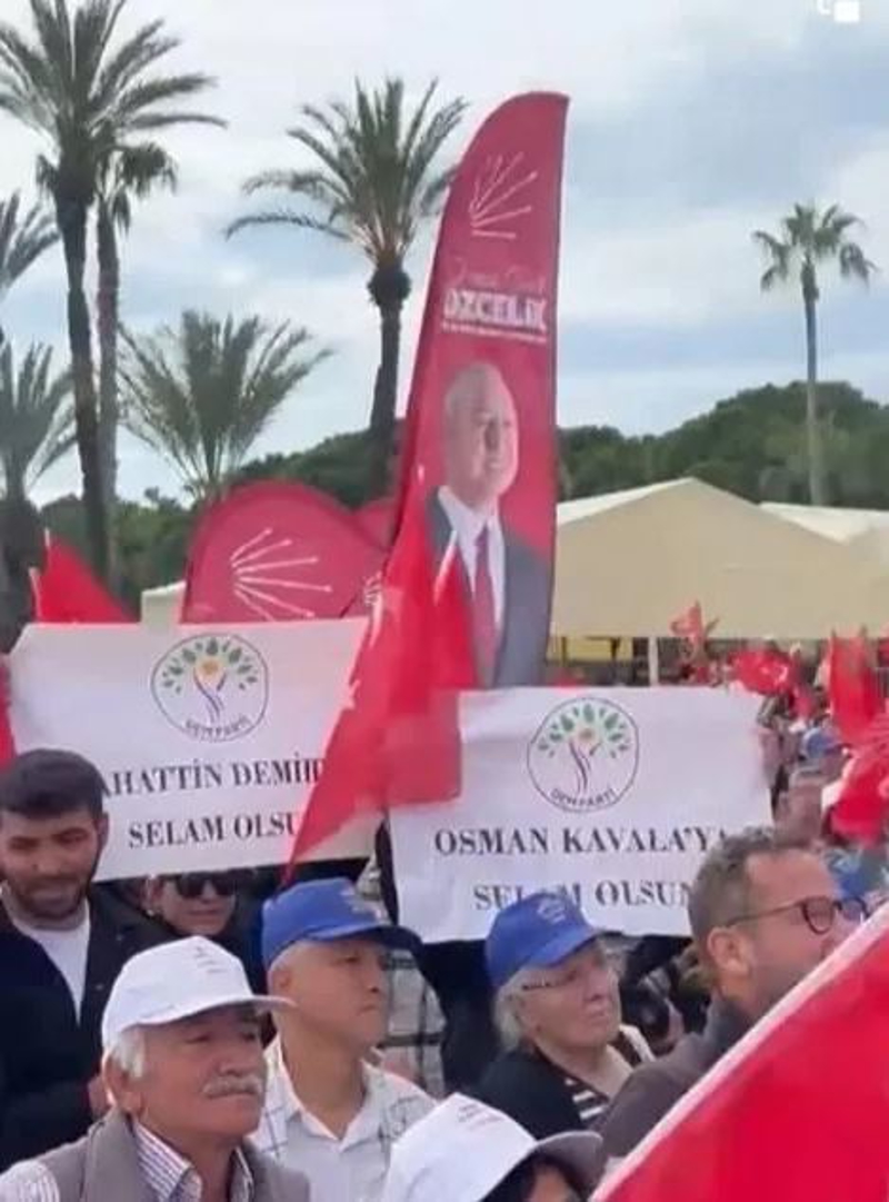 CHP ve DEM yine yan yana! Özel'in mitinginde Demirtaş ve Kavala pankartı