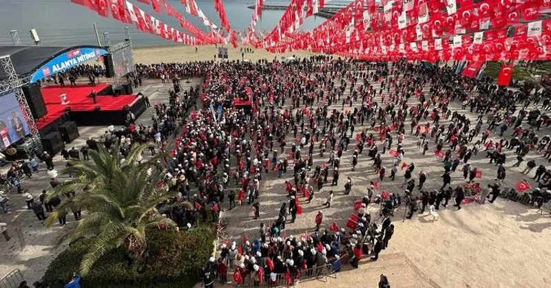 Antalya'nın Alanya ilçesine 31 Mart Yerel seçimler için gelen CHP Genel Başkanı Özgür Özel, belediye arkasındaki düzenlenen miting alanında partililere seslendi.