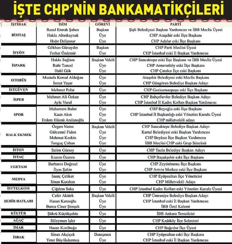 Liyakat ve hizmet vaadi ile yerel yönetimlere gelen CHP'li belediyeler, özellikle İstanbul, İzmir ve Ankara büyükşehir belediyelerine ait iştirakler üzerine adeta çöktü. CHP'li yöneticiler, kendileri için tahsis ettikleri huzur hakları ile birlikte belediye kasasından her ay 250 bin TL ile 400 bin TL arasında kadar maaş alıyor.