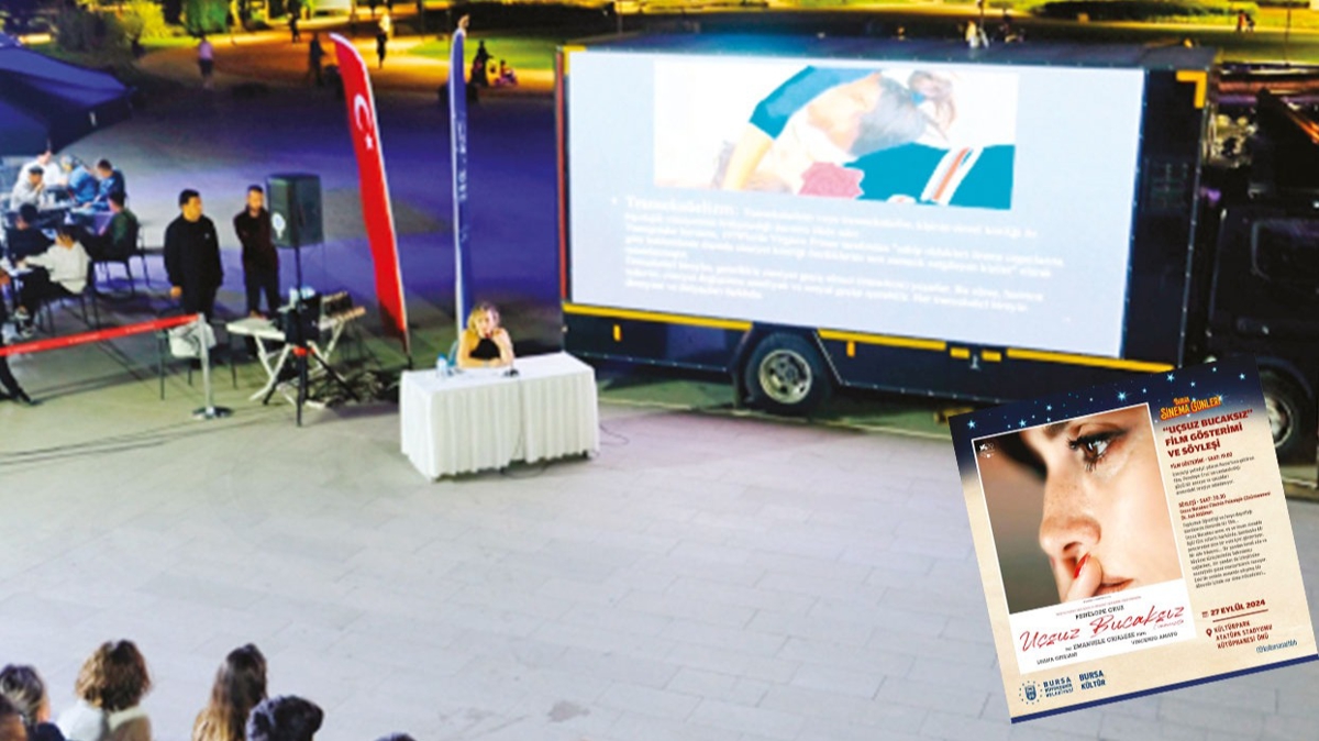 Bursa Büyükşehir Belediyesi'nin çocukların da izleyiciler arasında olduğu 'Uçsuz Bucaksız' sinema etkinliği, LGBT propagandasına sahne oldu.