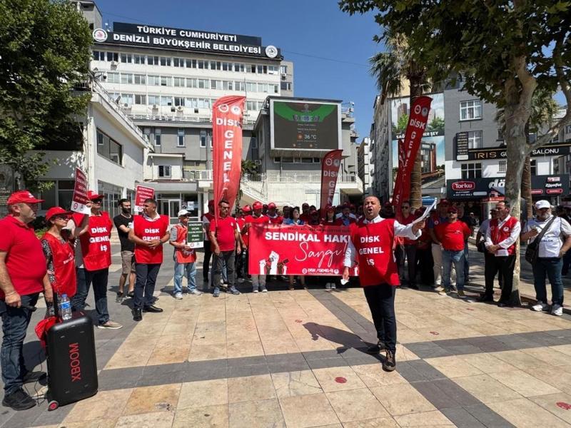 DİSK Genel-İş Sendikası, Denizli Büyükşehir Belediyesi ile Pamukkale Belediyesindeki örgütlenme çalışmalarına karşı, sendikaya üye olmak isteyen işçilere baskı uygulandığını öne sürdü. Büyükşehir belediyesi önünde eylem yapan işçiler, kendilerine baskı yapan 17 bürokratın isimlerini tek tek açıklayarak, bu kişiler hakkında suç duyurusunda bulunduklarını söyledi. Eylemci işçilere Genel-İş Sendikası Genel Başkan yardımcıları Al Haydar Kara ve Faruk Saral ile vatandaşlar da destek verdi.