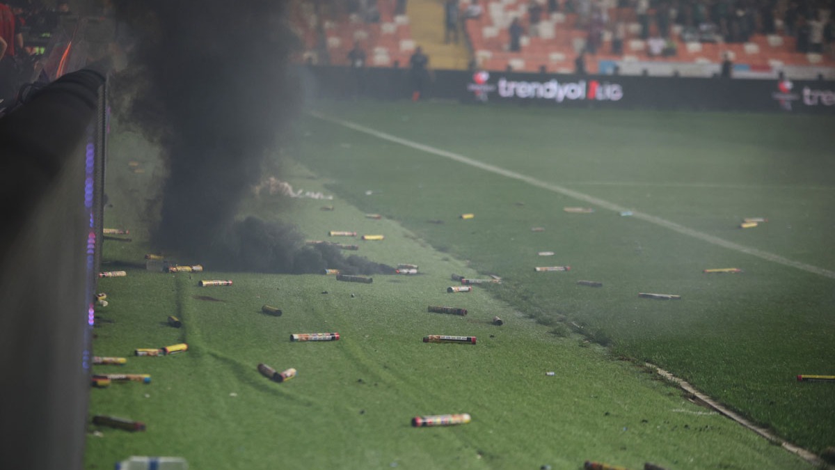 Atılan maddelerin temizlenmesinin ardından Abdulkadir Bitigen, yaklaşık 5 dakika ara verilen maçı hakem atışıyla başlatmıştı.