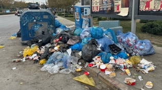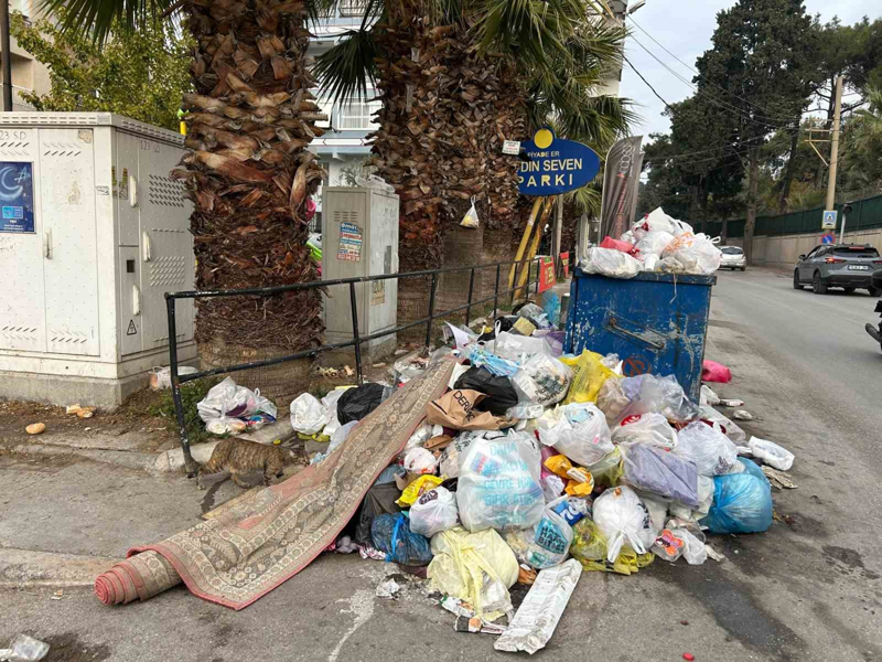 Buca'da esnaf Ali Çalışkan, 2 gündür biriken çöpler nedeniyle dükkanlarını açamaz hale geldiklerini belirtti; "Biriken çöpleri yola doğru ittirmek zorunda kaldık, insanlar yürüyemiyor. Burası kokuyor" diyerek isyan etti.