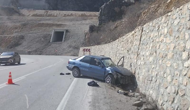 G.K. idaresindeki otomobil, Çorum-Osmancık kara yolu Kırkdilim mevkisinde istinat duvarına çarptı.