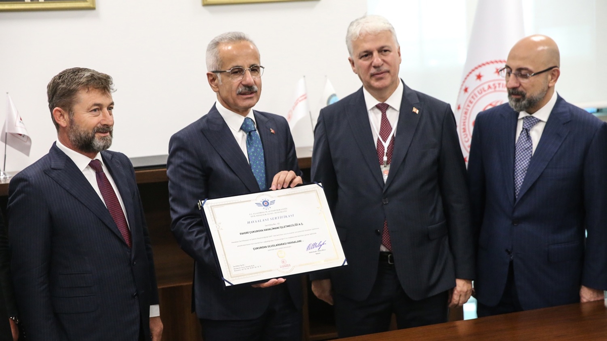 Ulaştırma ve Altyapı Bakanı Abdulkadir Uraloğlu, bugün Cumhurbaşkanı Recep Tayyip Erdoğan'ın katılacağı programla hizmete açılacak havalimanında gerçekleştirilen "Havaalanı Sertifikası İmza Töreni"ne katıldı.