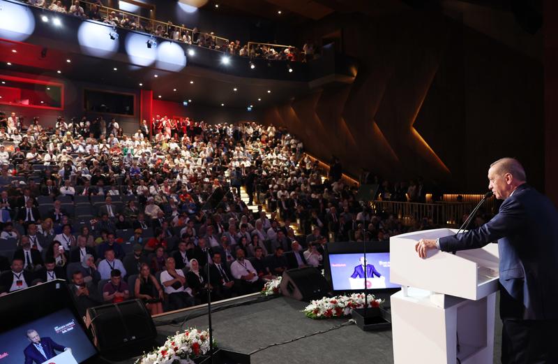 Necip Fazıl Kısakürek'ın "Anladım işi, sanat Allah'ı aramakmış, Marifet bu, gerisi yalnız çelik çomakmış." ifadelerini kullandığını söyleyen Cumhurbaşkanı Erdoğan, "Hangi dalda olursa olsun, bizim sanat anlayışımızın temelinde güzel olanı görmek ve güzellikleri göstermek düşüncesi vardır. Aslında gönülle üretilen, sabırla ve fedakarlıkla üretilen, el emeği, göz nurunun nakşedildiği her güzel şey sanattır." diye konuştu.
