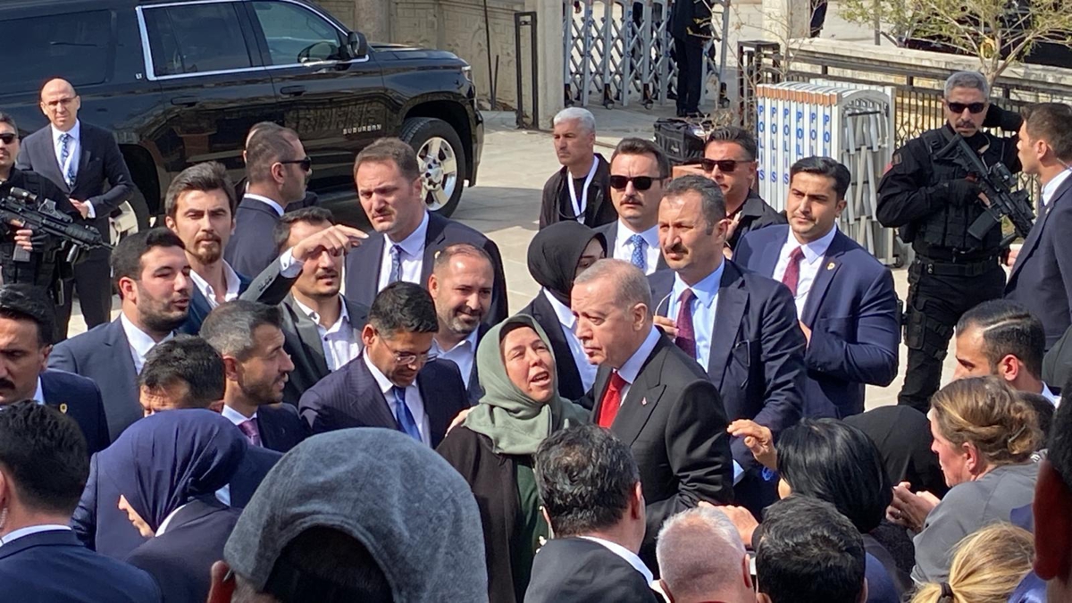 Erdoğan'a, KKTC Cumhurbaşkanı Ersin Tatar, Türk Devletleri Teşkilatı (TDT) Aksakallar Konseyi Başkanı Binali Yıldırım, AK Parti Antalya Milletvekili Mevlüt Çavuşoğlu ile Cumhur İttifakı'nın Antalya Büyükşehir Belediye Başkan adayı Hakan Tütüncü de eşlik etti.