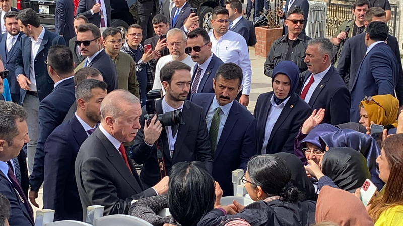 Cumhurbaşkanı Erdoğan, burada cuma namazını kıldı. Erdoğan, cami çıkışında kendisine sevgi gösterisinde bulunan vatandaşları selamladı.