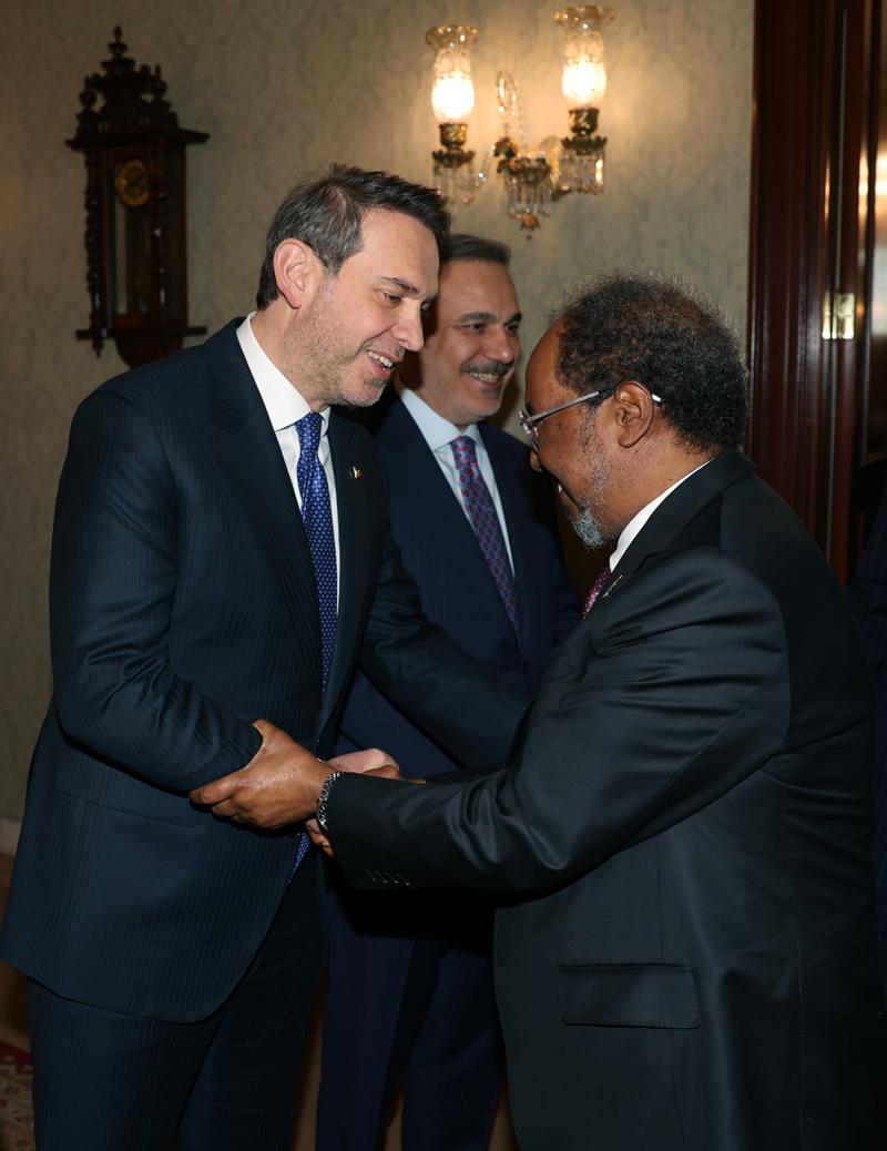 "Görüşmede iki ülke arasındaki siyasi, ekonomik, güvenlik, insani yardım ve savunma alanlarındaki iş birliğinin daha da güçlendirilmesi ele alındı. Afrika Boynuzu'nda barış, istikrar ve kalkınmaya yönelik ortak irade bir kez daha vurgulandı. Türkiye, Somali'nin toprak bütünlüğüne, egemenliğine ve kalkınma hedeflerine yönelik güçlü desteğini kararlılıkla sürdürmektedir. Önümüzdeki süreçte de iki ülke arasındaki iş birliğinin karşılıklı güven ve ortak çıkarlar temelinde daha ileriye taşınması hedeflenmektedir."