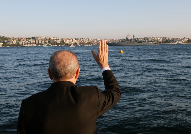 Cumhurbaşkanı Erdoğan, Preveze Deniz Zaferi'nin 486'ncı yıl dönümü ve Deniz Kuvvetleri Günü dolayısıyla İstanbul Boğazı'ndan geçiş yapan gemileri selamladı.